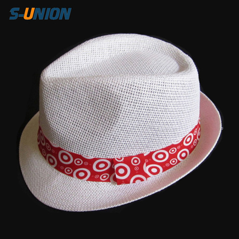 Promocional personalizado logotipo personalizado mujeres banda de paja de papel fedora sombreros al por mayor blanco fedora sombreros para hombres